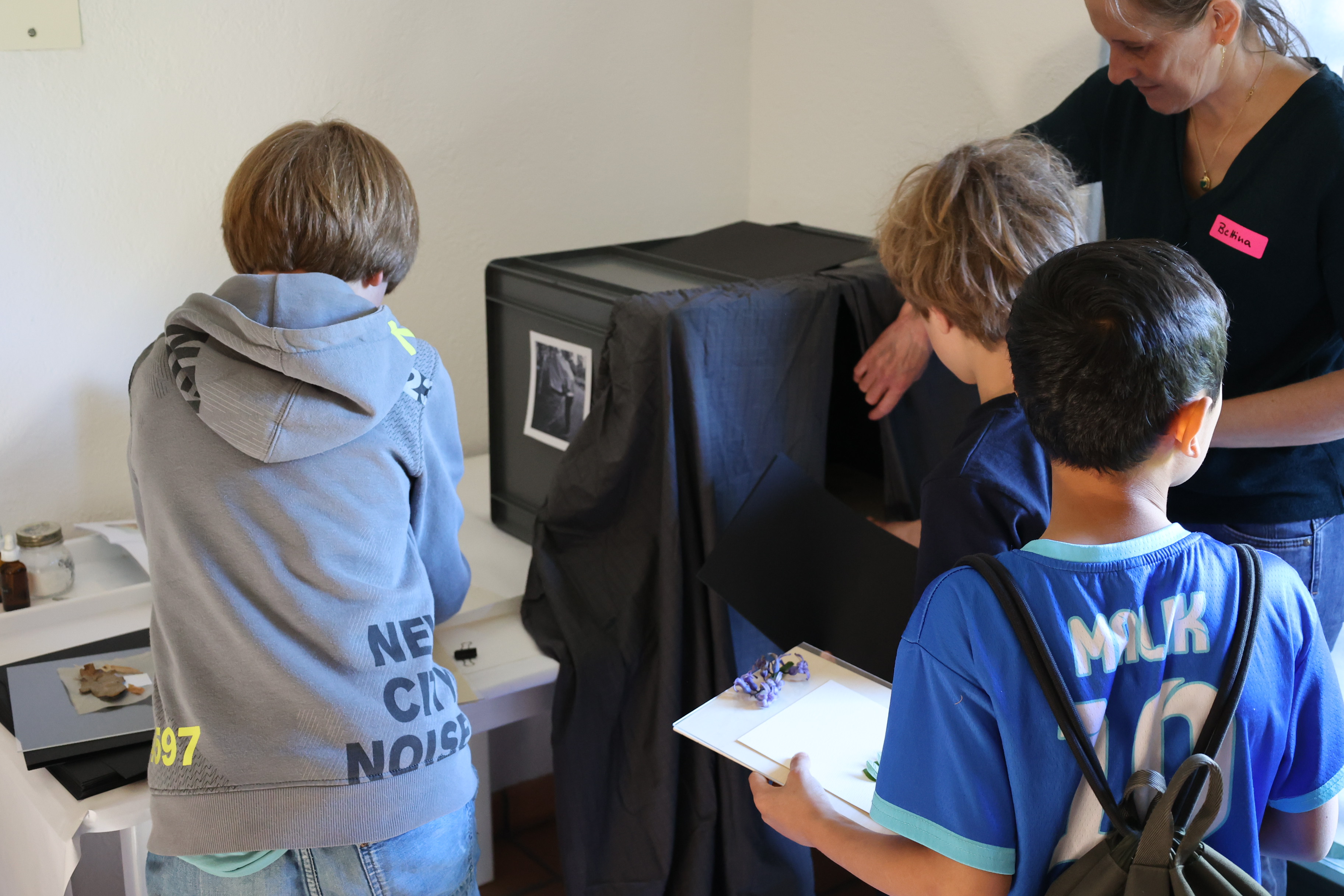 Im April 2026 verwandelte sich das Ortsmuseum Zollikon für einen Nachmittag in ein offenes Atelier: Das Kinder- und Jugendkulturprogramm des Kulturkreis Zollikon war zu Gast und organisierte gemeinsam mit Artizip den Workshop «BOTANICA BLUE». Kinder und Jugendliche entdeckten dabei die Cyanotypie – eine der ältesten fotografischen Techniken. Mit Blättern, Blüten, Sonnenlicht und Wasser entstanden leuchtend blaue Bilder. Spielerisch wurde erfahrbar, wie Licht und Schatten zusammenwirken und Natur zur Vorlage künstlerischer Experimente wird.